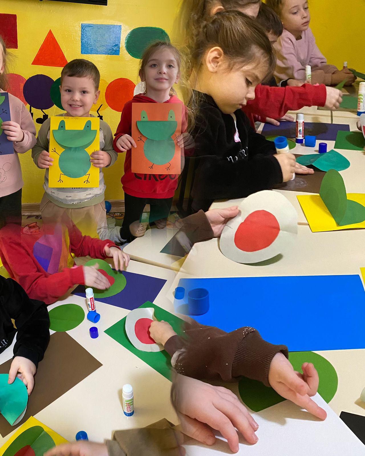 Аппликация на тему: «Лягушка». Цель: обучение умению изготавливать аппликацию из готовых геометрических форм.